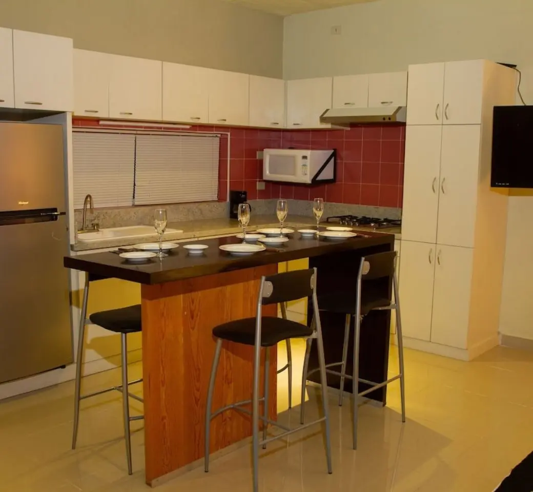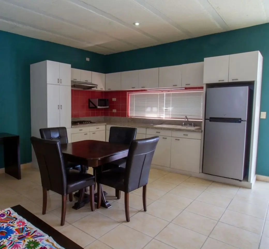Departamento con cocina, sala, comedor para dos a cuatro personas. Ubicado a 3 kilómetros de la Zona Centro. Además de un área libre donde podrá tomar el sol. Capacidad Máxima: 4 personas. Incluye: Cocina, wifi, área para trabajar, agua caliente, amenidades básicas de higiene personal, limpieza. No incluye: Estacionamiento dentro de la instalación, pero puede […]