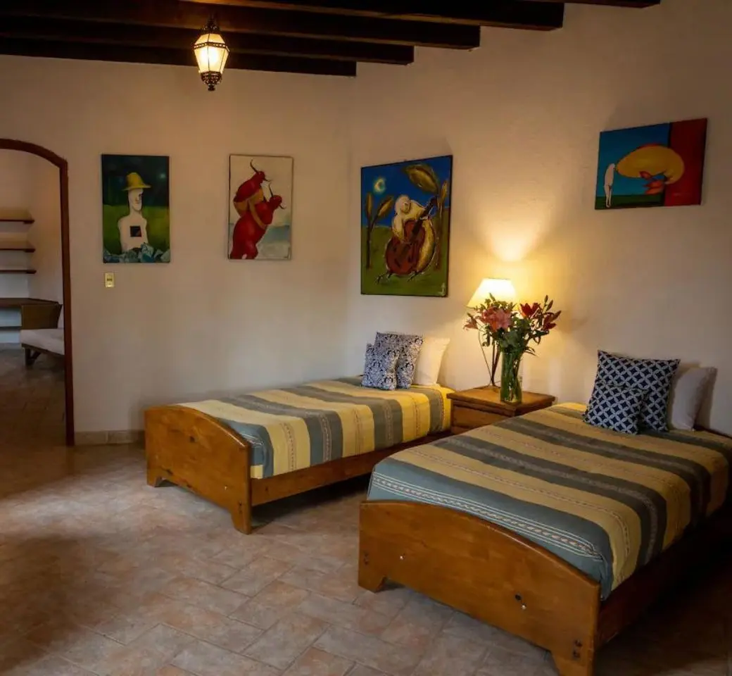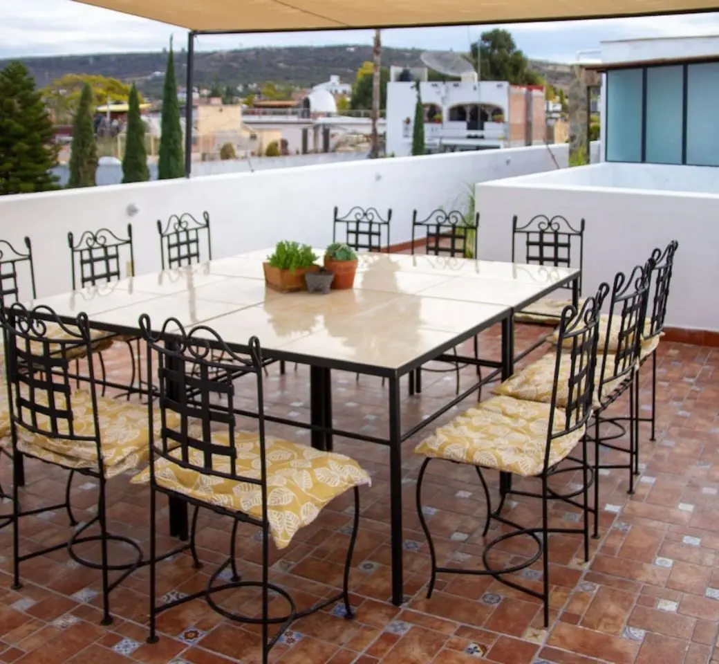Casa de tres pisos en la Zona Centro de San Miguel de Allende, Con cocina equipada, sala rústica, comedor, siete habitaciones (la mayoría con baño independiente). Cuenta con una hermosa terraza. Capacidad Máxima: 18 personas. Incluye: Televisión, wifi, cocina, área para trabajar, amenidades básicas de higiene personal, agua caliente, limpieza.